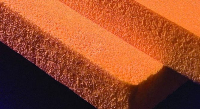 - est une masse mousseuse remplie de gaz de polymères cellulaires et pour les besoins ménagers (pour l'isolation), les panneaux sont fabriqués de 1000 × 1000 mm, 20, 30, 40, 50 et 100 mm d'épaisseur;