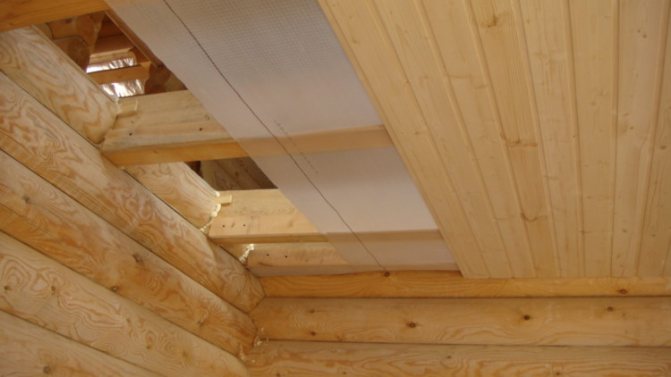 Important! Il est préférable de poser une couche de pare-vapeur sous les poutres en bois, sinon elles seront très sensibles à la pourriture. Néanmoins, s'il est impossible de mettre un film pare-vapeur sous les poutres, celles-ci doivent être imprégnées de solutions qui protègent contre la pourriture et la moisissure.