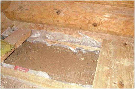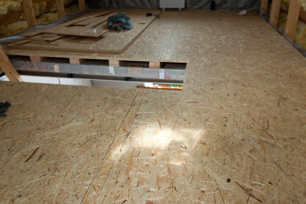 Mais comment isoler le sol d'une maison en rondins si les rondins sont suspendus? Pour ce faire, un bloc de bois de 30X30 mm ou 30 × 40 mm est vissé au bas de la poutre sur ses côtés (cela s'appelle une poutre crânienne) et un sous-plancher est placé dessus, pour lesquels des matériaux en feuille tels que des panneaux de particules, L'OSB ou le contreplaqué conviennent.