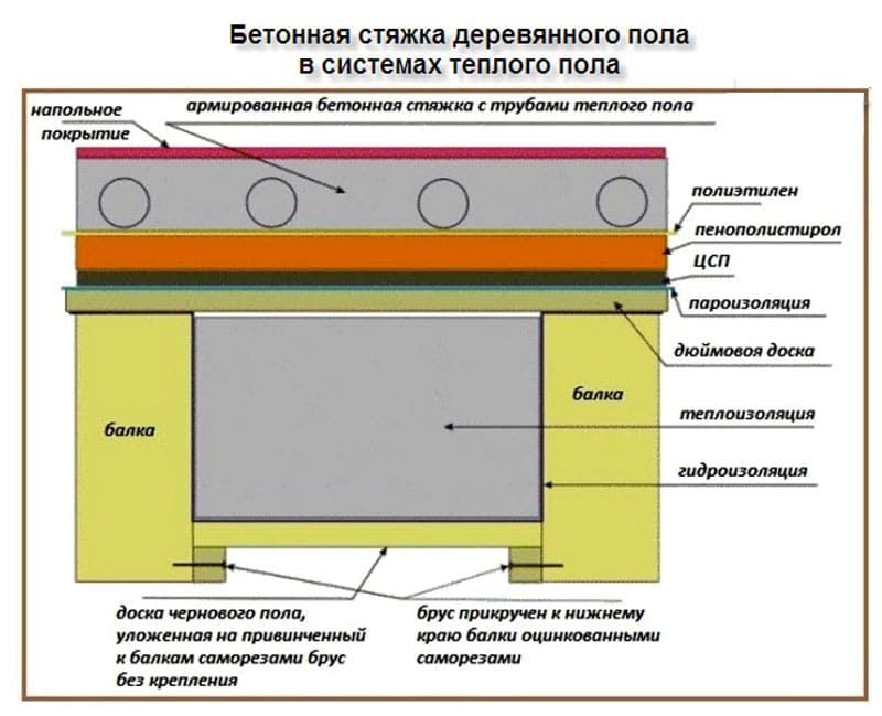 Les poutres, ce sont aussi des rondins, sont posées parallèlement entre deux murs sur une couche de chape en béton ou sur une plaque de base. Auparavant, les bûches n'étaient que du bois, mais maintenant, les matériaux métalliques et polymères apportent de la variété, qui résistent mieux aux déformations et aux craquements du sol fini qui sont posés sur les planches au fil du temps.