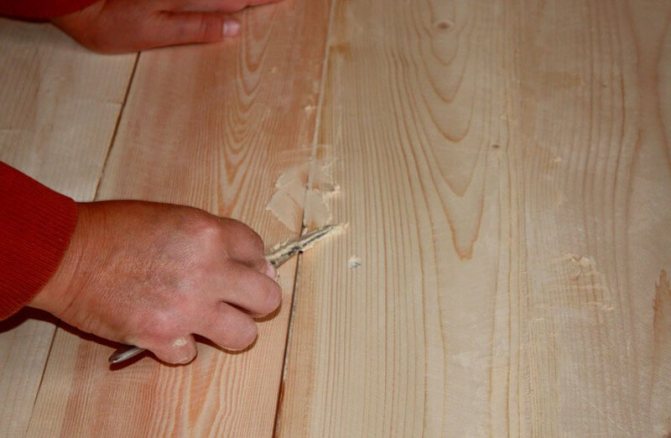 - Nous enlevons l'ancienne peinture, effectuons un examen rapide du vantail de la porte et déterminons pour quelle raison l'air froid pénètre dans la pièce. Scellez soigneusement les fissures entre les panneaux avec du mastic.
