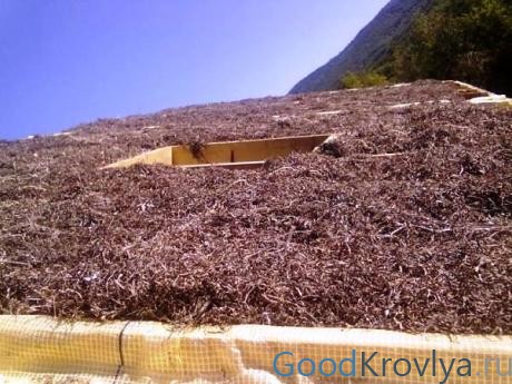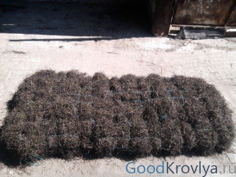 - Praticité. Au fil du temps, le matériau acquiert des propriétés hydrofuges. En raison de la teneur en tanins, les herbiers marins ne provoquent pas la pourriture ou le dessèchement des éléments du toit qui sont en contact avec lui, et ne sont pas sensibles aux effets des champignons destructeurs.