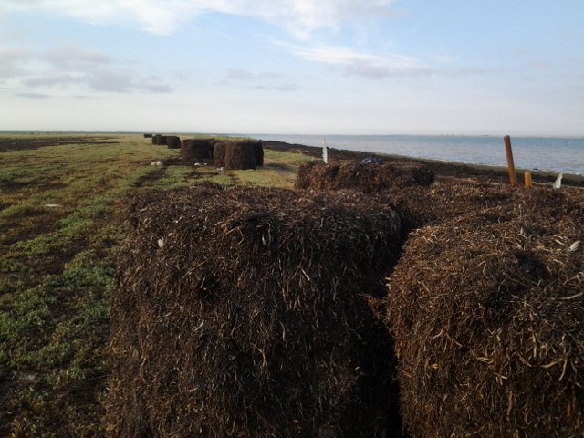 Des centaines de milliers de tonnes d'herbes marines sont échouées chaque année. Seul 1% de ce montant est utilisé à des fins de production. Les fruits de mer se composent principalement de 2 types de zostera, qui perdent leurs feuilles en août-septembre.