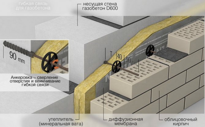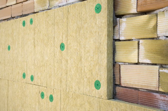La protection contre le flux d'air ascendant, pas toujours chaud et sec, est assurée par un pare-vent avec une perméabilité maximale à la vapeur, qui en hiver sert de sorte de "couverture" qui empêche le remplacement des bulles d'air chaud dans l'épaisseur du coton avec de l'air froid. De plus, le pare-vent résiste à l'arrachement actif des fibres d'isolation par le flux d'air ascendant. De nombreux fabricants produisent de la laine de basalte recouverte de fibre de verre, et les vendeurs de ce produit affirment avec confiance que lors de l'utilisation de ce matériau, une barrière coupe-vent n'est pas nécessaire. Il s'agit d'une interprétation erronée, car la fibre de verre n'agit que comme un renfort et un obstacle à l'endommagement de la plaque pendant le processus d'installation, affectant ainsi uniquement la commodité du travail. La fixation de la laine de coton est effectuée à l'aide de chevilles-parapluies, qui doivent pénétrer dans le mur d'une quantité de 60 à 70 mm.