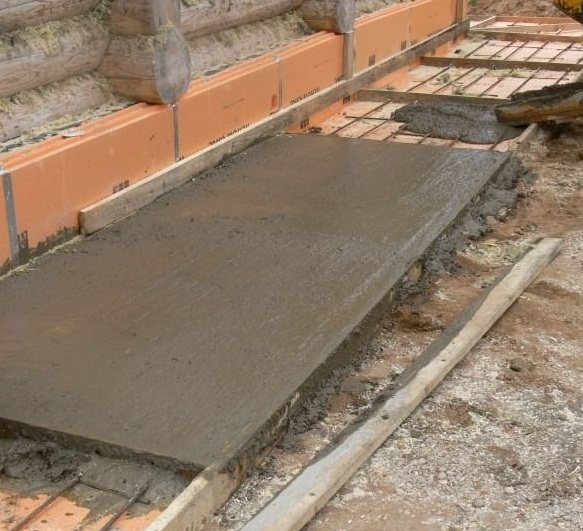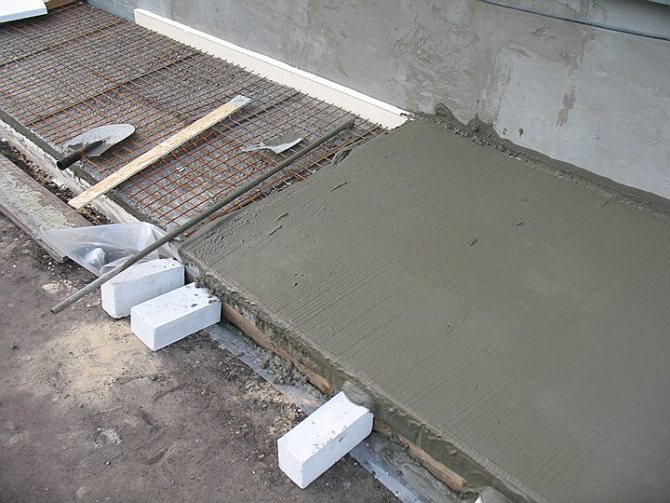 - Il est préférable d'organiser la pente requise avec du sable afin que l'épaisseur du béton soit uniforme partout.
