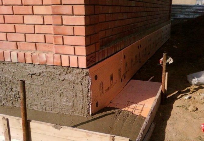 - Ensuite, isolez la bande de fondation par l'extérieur avec des feuilles de polystyrène expansé de 50 mm d'épaisseur.