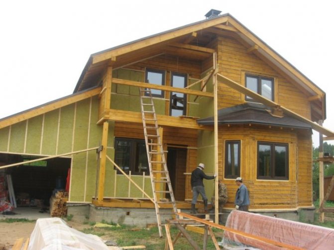 A l'extérieur, une caisse est cousue sur les murs, et un isolant - de la laine minérale - est placé entre ses barreaux. Dans les conditions de la région de Moscou, une épaisseur de couche isolante de 70 à 100 mm est recommandée pour qu'une maison en bois réponde pleinement aux normes modernes de rétention de chaleur.