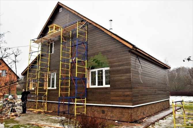 La finition de la façade sous un arbre donnera à la maison un aspect noble. La gamme de bardage est variée en forme et en couleur. Le client choisit le revêtement à son goût. L'imitation de poutres et de bûches collées est populaire. La sculpture ajoutera de l'originalité.
