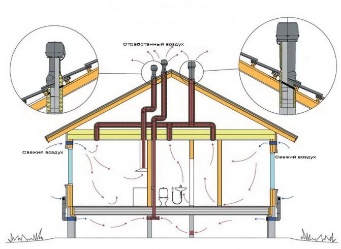 L'objectif principal du système de ventilation est de fournir un échange de chaleur. La température de l'air et du toit est mélangée et, par conséquent, un microclimat confortable est créé dans la maison.