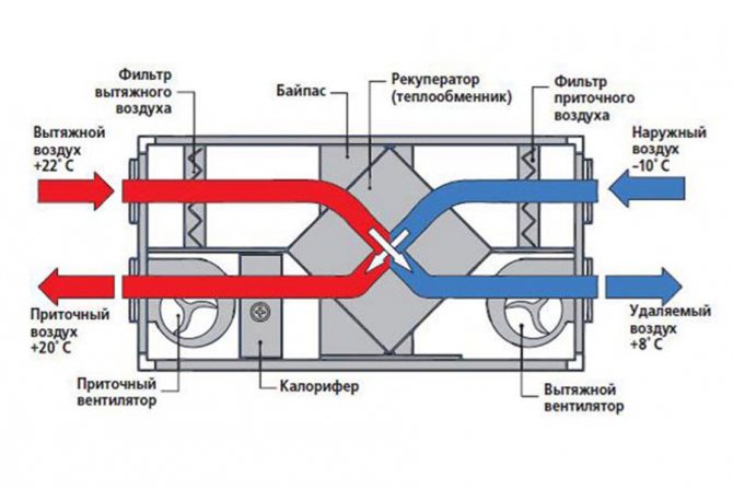 Dans ce cas, la chaleur du flux d'air sortant est transférée au flux entrant. En été, de cette manière, l'air entrant est refroidi.