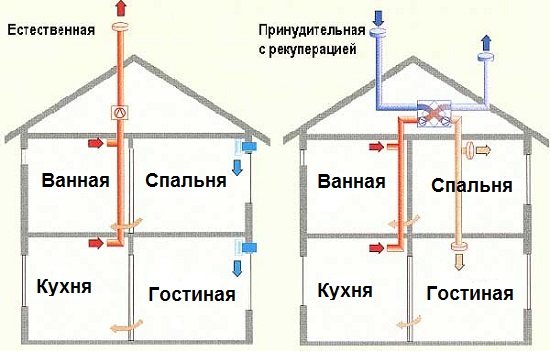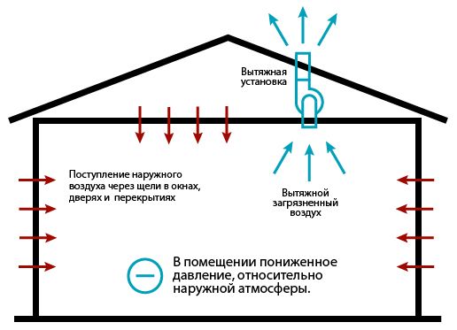 Absolument le contraire de la ventilation par soufflage selon le principe de fonctionnement d'une hotte aspirante dans une maison en bois. Si dans le premier cas il y a un effet mécanique sur le flux d'air, dans le second - sur son écoulement de la maison.