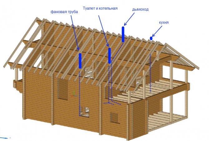 Pour que le futur équipement de ventilation se justifie et soit le plus productif possible, il est nécessaire de réfléchir à l'avance à la hauteur optimale du toit et à sa forme. Il est également nécessaire d'attribuer les lieux d'installation des appareils et les sorties de tous les canaux du système.