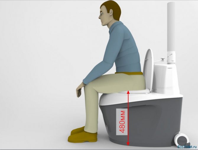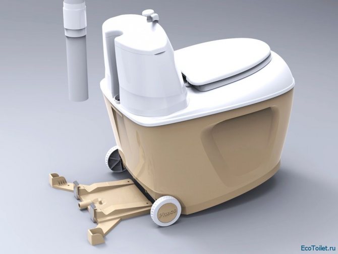 Volume de réservoir important assez longtempset sortir l'armoire sèche modèle 905 n'a jamais été aussi simple. Après avoir légèrement soulevé la poignée à l'avant, les toilettes roulent sur des roues à partir de la base de drainage.