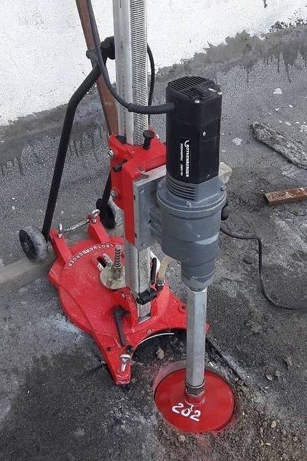 Une ouverture pour celui-ci est située du côté opposé à la soupape d'admission. Les sols en béton armé sont percés au perforateur ou couronne diamantée, le bois est scié à la scie sauteuse électrique.