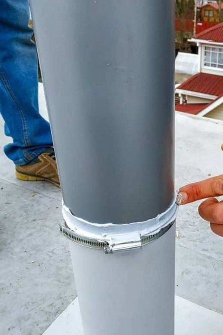 Le tuyau est conduit dans le trou et fixé au mur avec des pinces. Par le bas, il est fermé par un joint torique et recouvert de mastic. Un treillis est fixé sur le dessus.