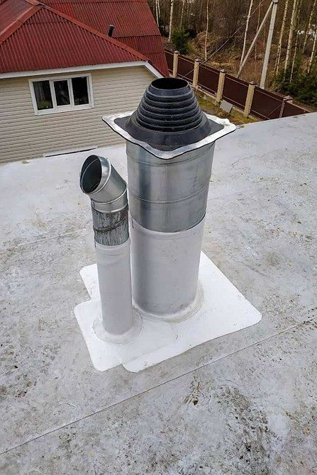 Le dessus de la hotte doit dépasser de 40 à 50 cm au-dessus du niveau du toit. Il est placé le plus loin possible des murs et du faîtage et fixé avec un joint torique sur les vis. Pour augmenter la traction, un déflecteur est monté sur l'extrémité supérieure. C'est un système d'amortisseurs qui ferment la sortie du vent, mais permettent à l'air de s'échapper par le bas. Lorsque le vent souffle dans le tuyau, un vide est créé du côté opposé au sens de l'écoulement.