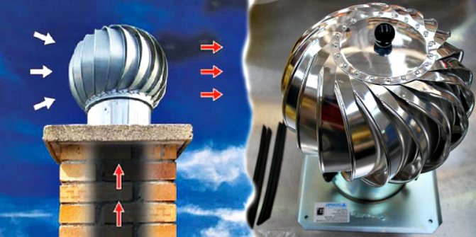 - Diffuseur-aube. Il est installé à l'extrémité supérieure du conduit d'air soufflé. Cette conception fonctionne grâce à l'énergie éolienne.