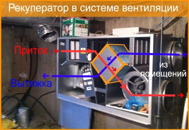 Les récupérateurs sont des installations dans lesquelles l'air entrant à basse température est chauffé à partir de l'air chaud sortant. Tout se passe dans le boîtier, où les ruisseaux sont séparés par une cloison métallique. C'est à travers lui que la chaleur est transférée d'un flux à un autre.