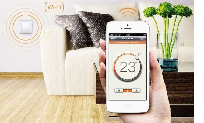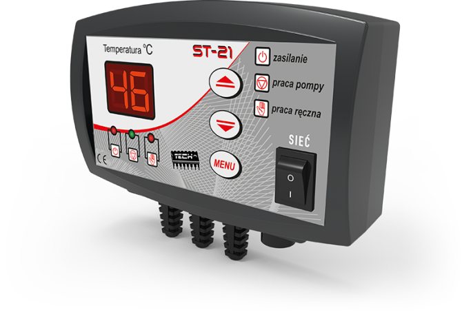 - thermostat; l'équipement est conçu pour analyser la température qui a été réglée pour une certaine pièce et les données transmises par le capteur; lorsque les indicateurs diminuent, le thermostat s'éteint ou allume le circulateur;