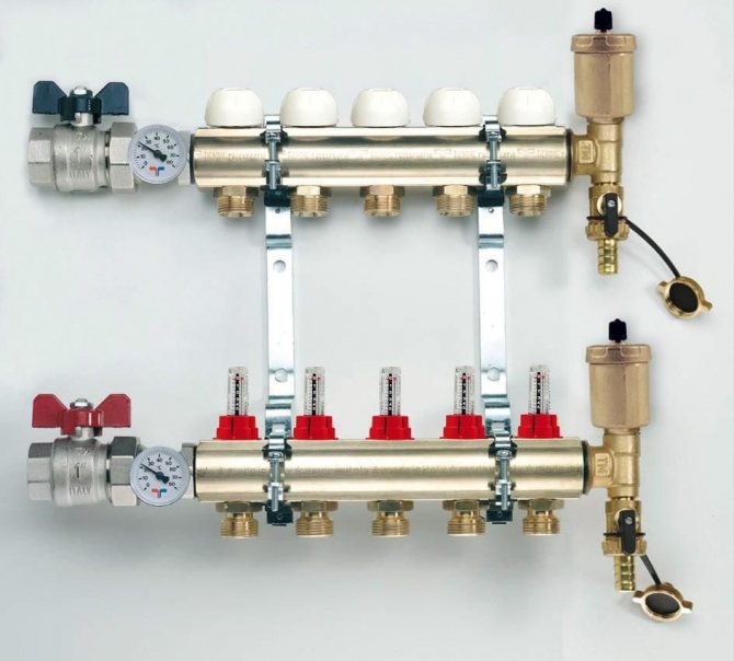 Le collecteur ou collecteur est une unité qui assure le bon fonctionnement du système de chauffage par le sol. Dans ce cas, le liquide de refroidissement est réparti le long des contours pas nécessairement de manière uniforme, mais selon les modes spécifiés. Un peigne est nécessaire lorsqu'il y en a plus de deux. Le rapport des flux caloporteurs est fixé sur chaque circuit par une tête thermique pour un plancher chaud.