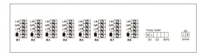 Le sixième relais contrôlera la chaudière et est conçu pour supprimer la haute tension du groupe de contact. La bobine de ce relais sera connectée en parallèle avec la pompe de l'unité de mélange.