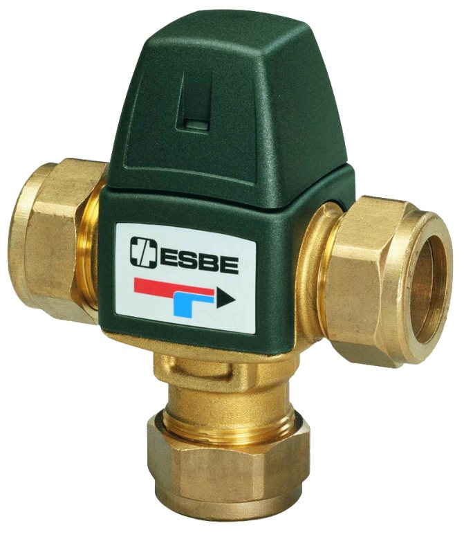 | Vanne mélangeuse à 3 voies ESBE VTA 572 | Schème. Chauffage par le sol avec mitigeur à trois voies sur le départ