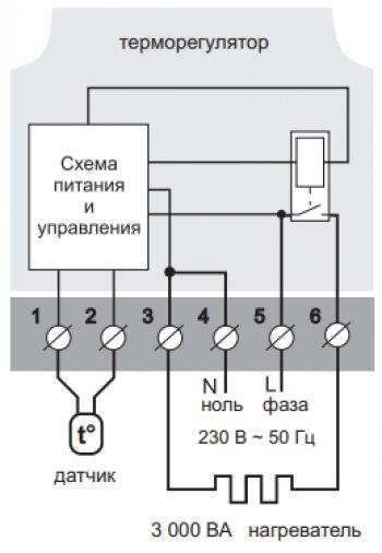Voici un schéma de raccordement classique pour les thermostats pour chauffage par le sol: