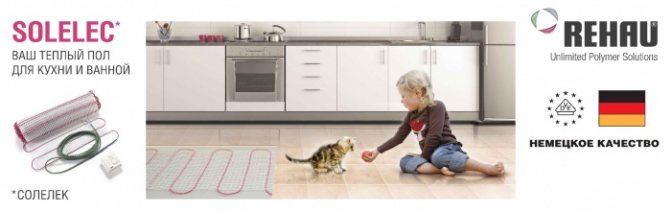 Pour faciliter l'installation du réseau, l'entreprise produit le chauffage par le sol Rehau Solelect. Ce sont des tapis chauffants. Ils sont en maille polymère. Un câble à deux conducteurs est fixé sur sa surface. Epaisseur du système 4,5 mm. L'installation est réalisée sous une chape fine ou une colle à carrelage d'une épaisseur ne dépassant pas 3-4 cm Les tapis peuvent être facilement renforcés sur la base. Ils ont un support adhésif. Aucun support ou sangle de montage supplémentaire n'est requis.