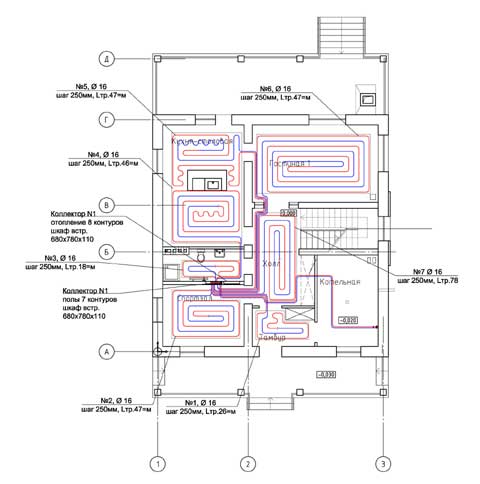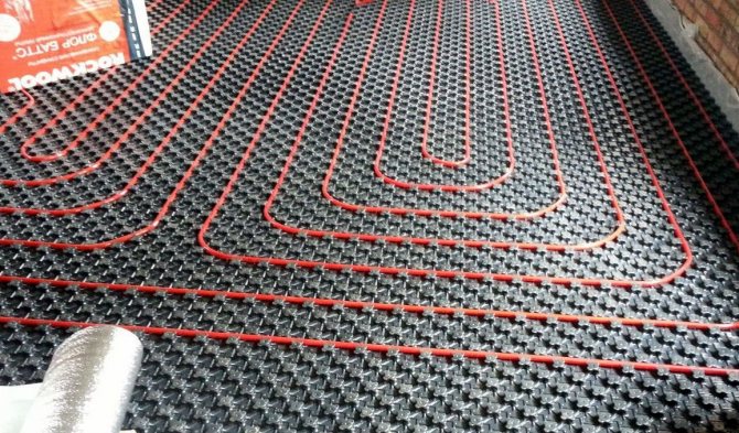 - Des nattes ou des panneaux sont placés et des tubes flexibles sont posés sur eux selon le schéma. Chaque tube est connecté à un collecteur. Les éléments chauffants sont fixés avec des attaches spéciales.