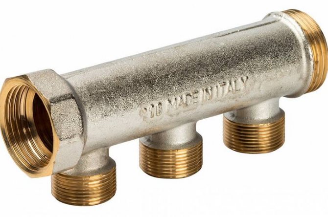 Le collecteur de distribution se présente sous la forme d'un segment de tuyau avec des branches. Son extrémité opposée aura une prise étouffée avec une fiche conventionnelle. Il ne sera pas du tout superflu d'y placer un séparateur.
