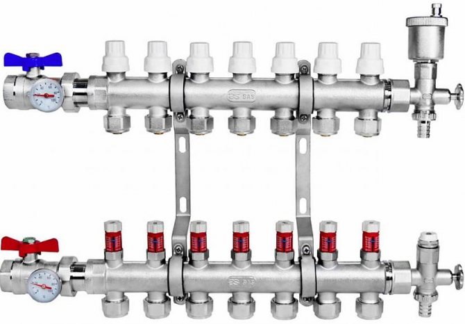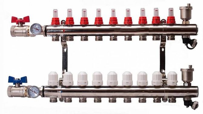 En ce qui concerne le séparateur, d'un côté, vous pouvez installer une vanne de vidange et de l'autre un purgeur d'air automatique. Le dernier composant du système de chauffage par le sol collecteur aide à éliminer l'accumulation d'air involontaire.