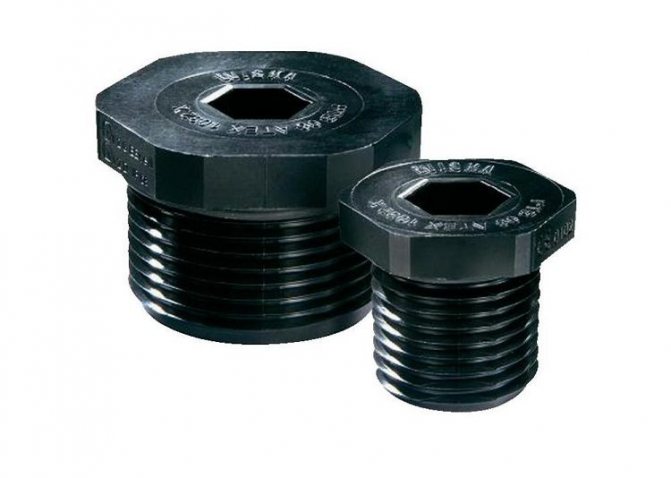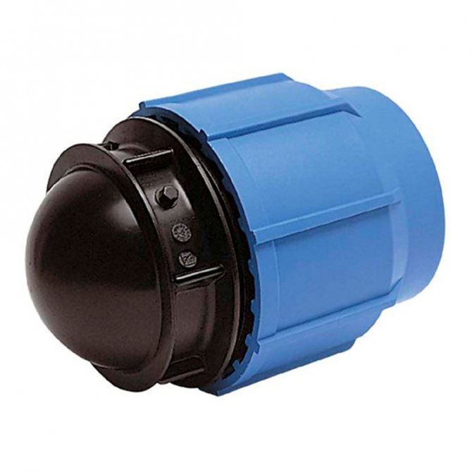 - Polymères. Les bouchons en plastique sont largement utilisés dans la construction privée. Le matériau ne rouille pas et ne s'use pas. Les raccords en polymère se déforment sous l'influence de températures élevées (soleil, eau chaude à partir de +85 degrés). Des raccords en polyéthylène sont utilisés pour le bouchon de tuyau intérieur.