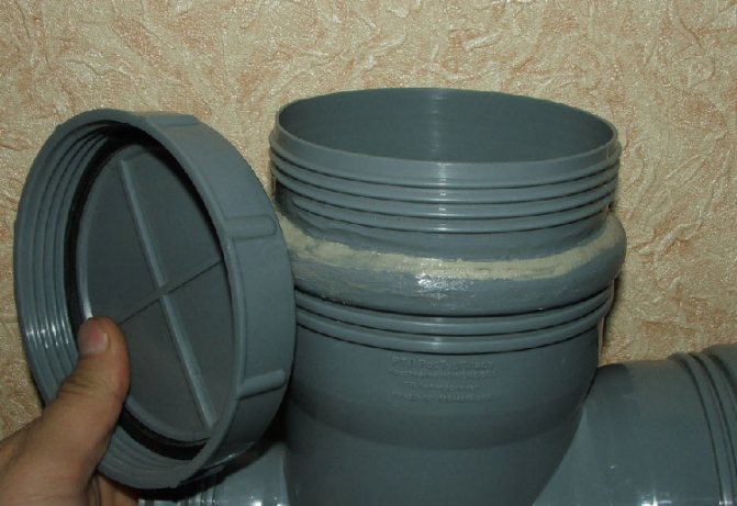 - Révision. Le système d'égouts doit fonctionner en continu. Le problème est que les eaux usées transportent diverses impuretés qui peuvent obstruer les tuyaux. Pour éliminer les blocages, l'accès à différentes sections du tuyau est nécessaire. Comme accès, des coudes aveugles sont utilisés, sur lesquels sont fixés des bouchons amovibles. En cas de blocage, le bouchon peut être retiré, des outils spéciaux peuvent être introduits dans la branche, nettoyer le tuyau, puis le remettre en place.