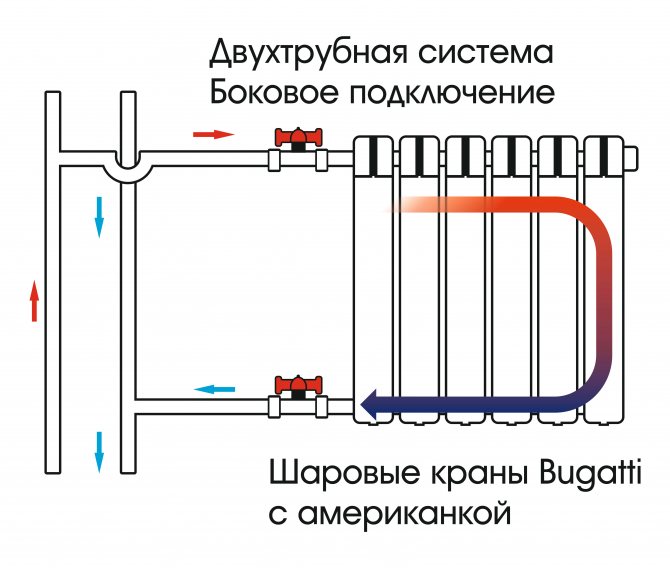 Conseil: la batterie doit être équipée de vannes d'arrêt, en cas de fuite de batterie, cette section se superposera et cela n'affectera pas le fonctionnement de l'ensemble du système de chauffage.
