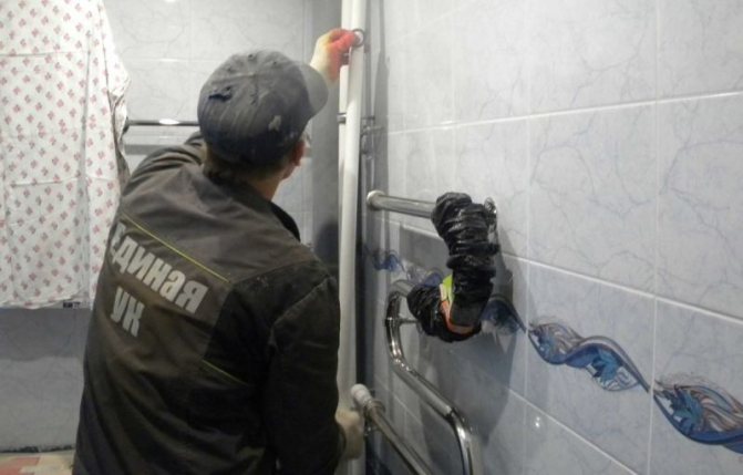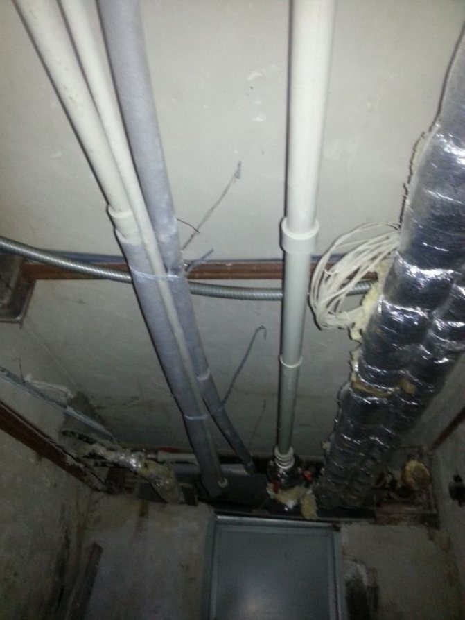 - avec de bonnes relations avec les voisins aux étages, vous pouvez venir dans leurs appartements et retirer une partie du tuyau dans l'espace en béton, car généralement toutes les fuites se produisent dans cette zone;