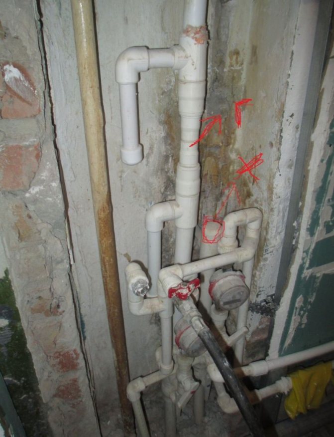 Dans le premier cas, vous devrez couper l'eau, à la fois dans le grenier et au sous-sol. Lors du versement par le bas, les colonnes montantes sont connectées par paires, vous devrez donc trouver une colonne montante voisine avec celle souhaitée. Pour ce faire, vous devrez vous rendre à l'appartement par le haut et voir l'emplacement du linteau (lire: "Installation de tuyaux de chauffage dans l'appartement - les principaux types de matériaux").