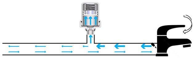 À peu près la même chose se produit dans le système, si vous ne libérez pas l'air. En ouvrant n'importe quel dispositif à bille, on "heurte" pratiquement deux substances incompressibles, qui se transforment en amortisseur pneumatique.