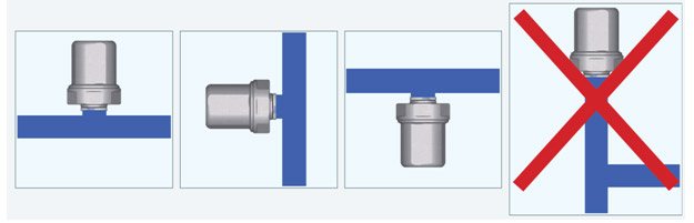 Vous pouvez le fixer dans n'importe quelle position : haut, bas, sur le côté. Pour les modèles à membrane, il est seulement important qu'il y ait un accès libre au mamelon. Quelle que soit la conception, il n'est pas recommandé d'installer l'appareil sur de longues branches de la ligne. La section du tuyau d'alimentation doit être aussi courte que possible.
