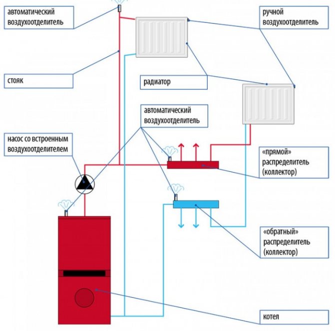 Les séparateurs d'air sont installés dans de grands systèmes de chauffage autonomes. Le principe de leur travail est de prélever l'air de l'eau avec sa conversion ultérieure en bulles et son élimination ultérieure.