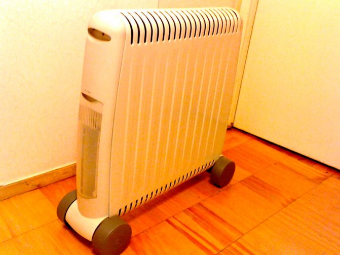 - Les structures au sol sont les appareils les plus courants pour le chauffage des locaux, qui sont équipées de roues et sont faciles à déplacer dans l'appartement. Les appareils au sol se composent le plus souvent de plusieurs nervures, ce qui augmente l'efficacité du chauffage.