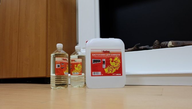 Les biocarburants est produit dans des conteneurs de 2,5 et 5 litres. En fonction de la taille de la cheminée biologique et du brûleur qu'elle contient, la consommation de carburant varie de 250 à 500 ml / h. En moyenne, le débit est de 360 ml / h. Sur la base de ces indicateurs, un bidon de 2,5 litres est nécessaire pour que le foyer biologique fonctionne pendant 8 à 10 heures.
