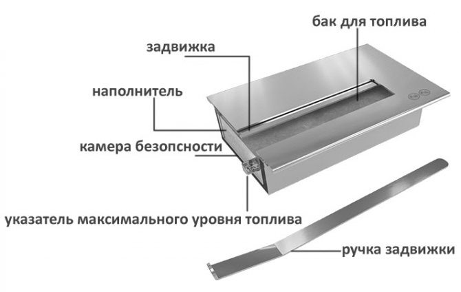 - Brûleur. Elle forme une ligne de feu. Il peut être de n'importe quelle forme et taille. Dans les cheminées bio puissantes, 2 ou plus peuvent être utilisées pour obtenir l'effet souhaité.
