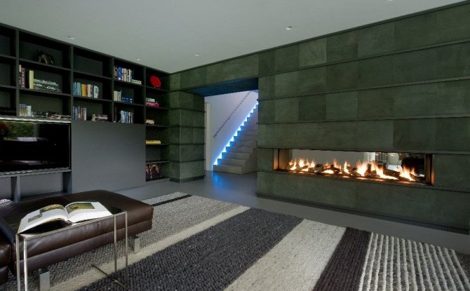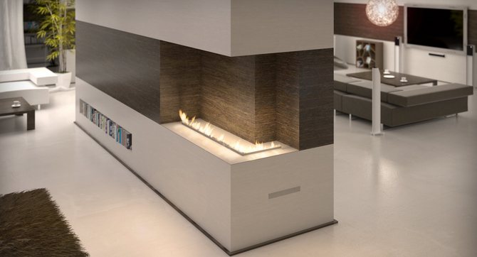 - Zonage de l'espace. C'est une bonne solution pour les chambres et studios spacieux où il y a plusieurs zones. À l'aide d'une cheminée écologique, vous pouvez à la fois diviser l'espace et créer une zone.