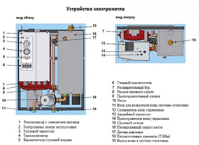 La puissance de la chaudière électrique est choisie en fonction de la perte de chaleur de la pièce. La température dans les pièces peut être réglée avec une grande précision par des capteurs d'automatisation ou des têtes thermiques installées sur des radiateurs. Relativement parlant, un chauffage excessif de la pièce avec une chaudière électrique ne se produit pas.