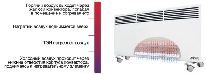 Le convecteur électrique est un équipement moderne qui est facile à utiliser et à installer. Le fonctionnement de l'équipement est le suivant: au fond du boîtier, il y a des ouvertures par lesquelles l'air froid pénètre dans le radiateur.