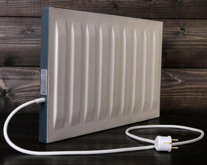 Ces appareils de chauffage sont plusieurs pièces chauffantes en céramique intégrées en un seul ensemble. Pour se protéger de l'humidité, la plaque en céramique est recouverte d'une glaçure spéciale. Une spirale métallique ou un fil mince est utilisé comme élément chauffant, qui est situé à l'intérieur d'une plaque en céramique. Contrairement à l'infrarouge, ces radiateurs ne brillent pas.