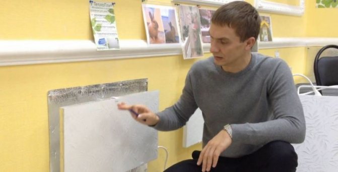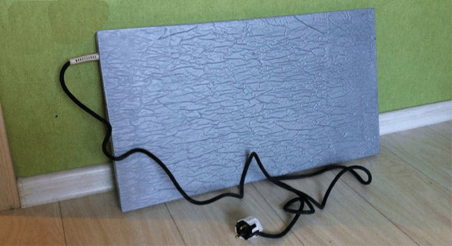 Un inconvénient important de cet appareil est sa fragilité. Même avec un léger contact mécanique, des éclats et des fissures apparaissent sur les dalles fragiles. De plus, cet appareil de chauffage a un poids décent, il n'est donc pas fixé sur des cloisons sèches.
