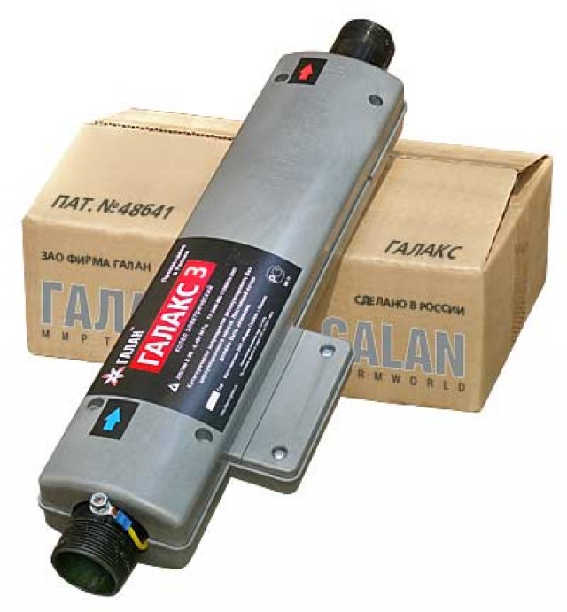 Les chaudières de chauffage Galan fonctionnent de la même manière. Les pièces sont connectées à une source de tension alternative et en 1 seconde, les électrodes sont inversées environ 50 fois. Une telle oscillation chaotique entraîne la libération d'une grande quantité d'énergie, ce qui aide à chauffer rapidement l'eau. L'élément principal de l'équipement est une petite chambre