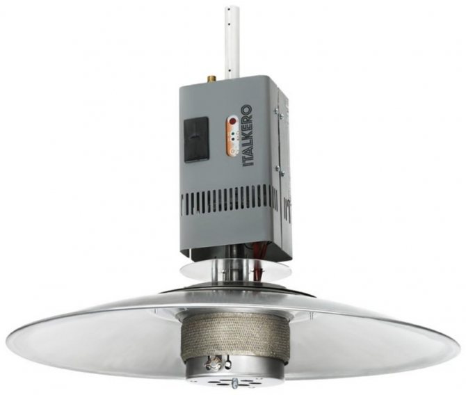 La particularité de ce dispositif est qu'une plaque en céramique joue le rôle d'un échangeur de chaleur. Les unités sont utilisées à l'extérieur et à l'intérieur. Le chauffage à gaz en céramique a le principe de fonctionnement suivant: