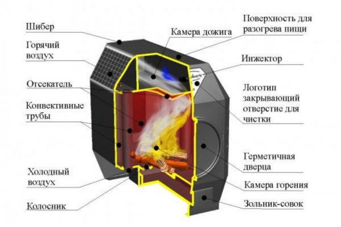 De tels appareils de chauffage peuvent avoir une chambre de combustion fermée et ouverte. Les modèles de type fermé pour la combustion du gaz prélèvent l'air de la rue et y éliminent les produits de combustion par un tuyau spécial posé à travers le mur. Ils sont bien adaptés à la maison ou aux chalets d'été et peuvent devenir une alternative à une chaudière à gaz. Les modèles avec chambre de combustion ouverte ne sont pas très adaptés aux applications résidentielles ou nécessitent l'utilisation d'une cheminée verticale.